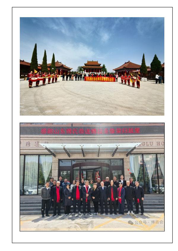4月12日《傅說圣像》啟程前往終目的地——山西平陸傅相祠,平陸縣傅圣故里文化研究會會長傅寶柱率領(lǐng)傅彩麗等宗親舉行了盛大的迎接儀式,山東護(hù)送團(tuán)隊與平陸迎接隊伍一同前往傅相祠,在大家的祝福聲中,《傅說圣像》端坐于傅相祠臺階之上。