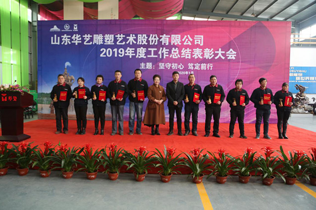 山東華藝雕塑藝術(shù)股份有限公司2019年度工作總結(jié)表彰大會在“堅守初心 篤定前行”,“只爭朝夕、不負韶華”友好、和諧、創(chuàng)新、綠色、共享的氣氛中圓滿結(jié)束。