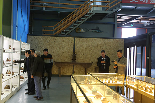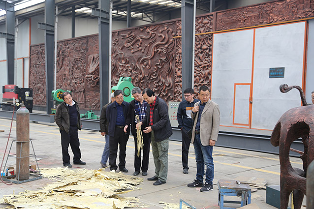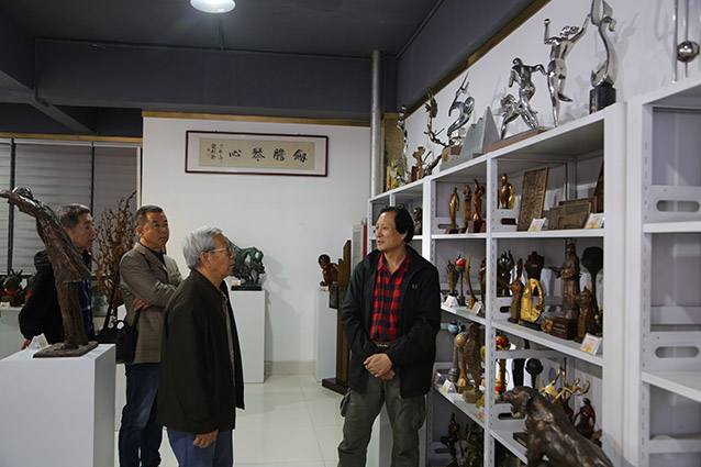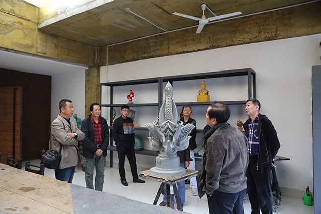 2019年10月23日,博山金祥琉璃有限公司袁總、山東陶瓷學(xué)院院長耿大海、中國工藝美術(shù)大師王孝誠、雕塑家李友生教授、雕塑家李霽教授,在華藝交流雕塑藝術(shù)